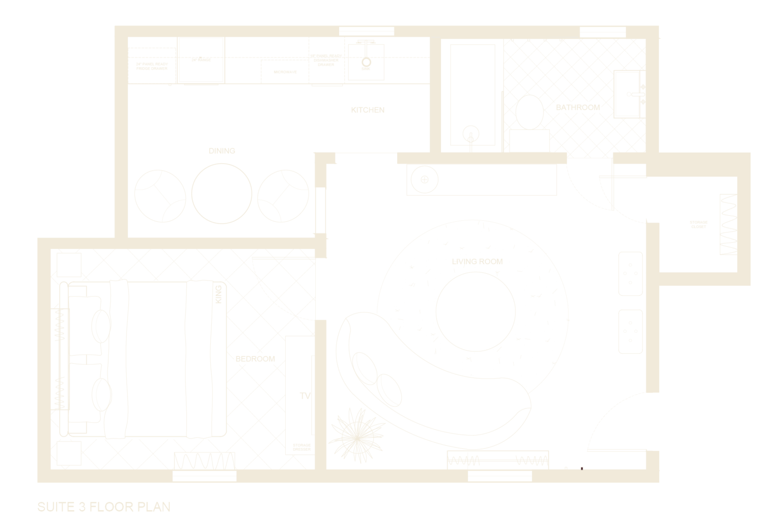 - Fully equipped kitchen: High-end stove, microwave, dishwasher, mini-fridge/freezer.