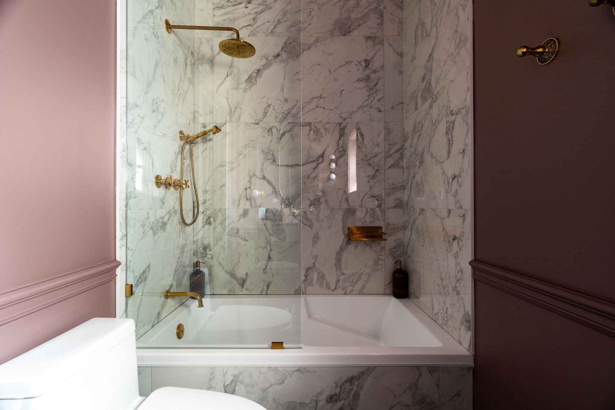 The kitchen, adorned with rosso levanto marble and unlacquered brass finishes, sets the stage for culinary delights, while the full 4-piece washroom exudes elegance with arabescato porcelain and stunning brass accents.