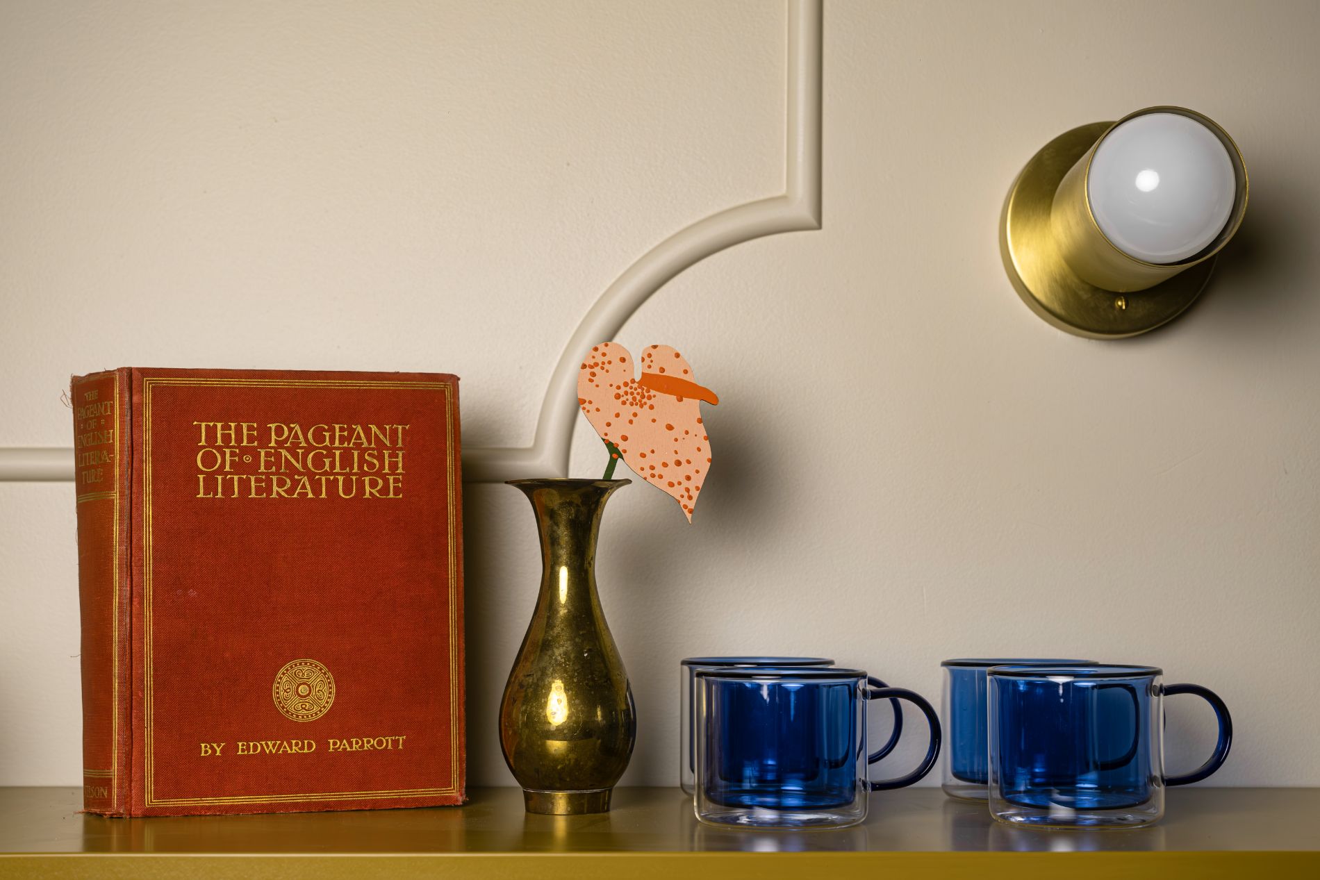 - Custom designed headboard by Stay Here x Kara Schuster.